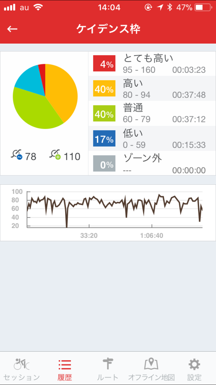 サイクルコンピューターはスマホ、RunTastic Road Bike Pro を使用。(GPS,ケイデンス等)