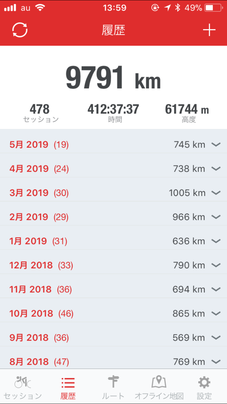 5月はとにかく花粉症シーズンが終わり、気候も良いため、気持ちよく外を走れたので、すれ違うローディーの方々も多かったような印象です。一方で、暑さに順応するための重要な月間ですので、雨の日以外の3本ローラー練習は少なめ。